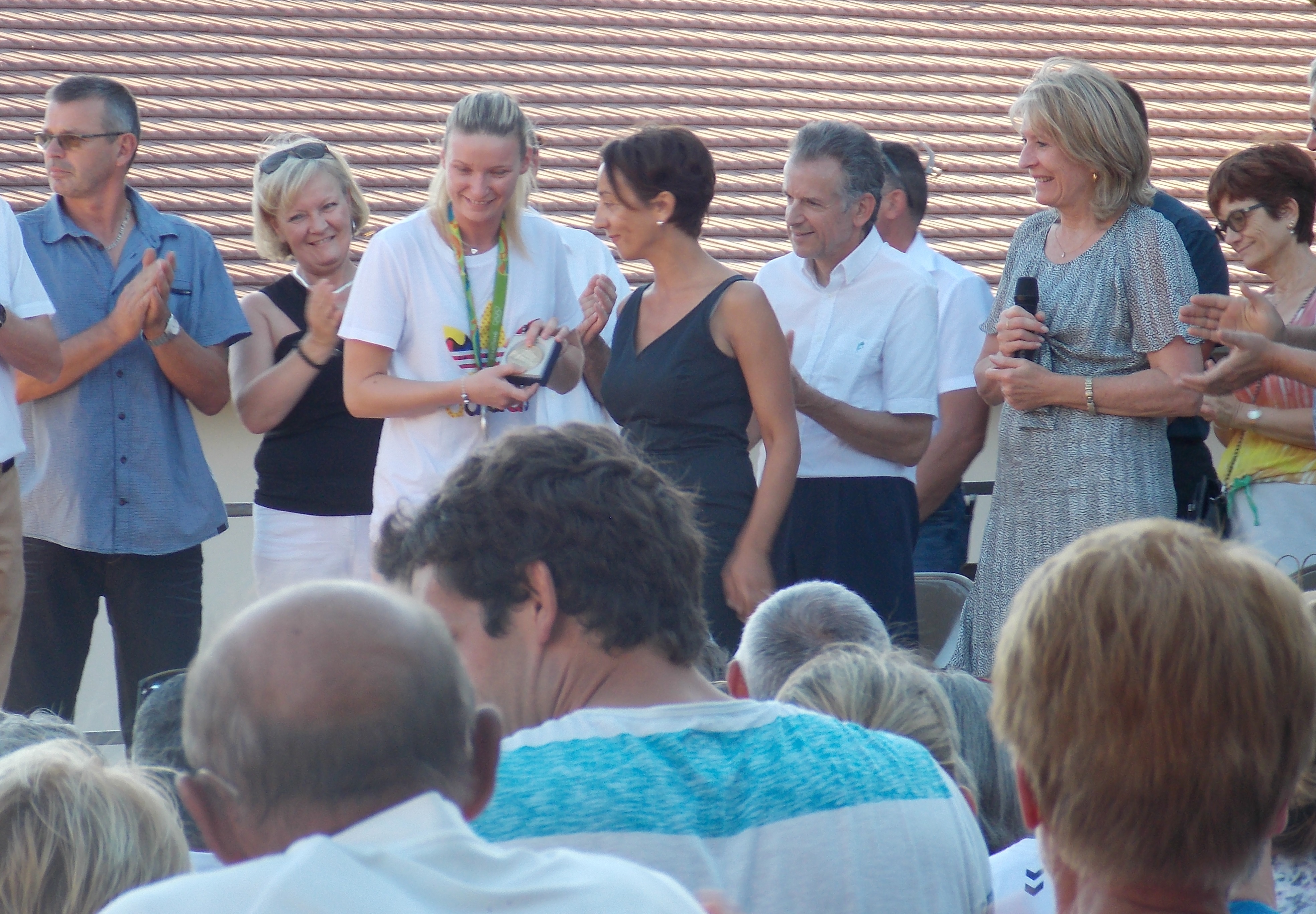 L’excellence du jeu d’Amandine Leynaud, son attitude sur le terrain trouvent leur prolongement hors du stade. C’est sur la place du village de Vesseaux que nous l’avons retrouvée ce vendredi avec sa famille, ses amis, mais aussi les membres de son ancien club formateur : l’Entente St Etienne Aubenas Handball.