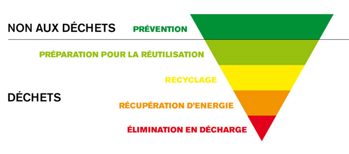 - L’inscription dans la loi du nécessaire respect de la hiérarchie des modes de traitements des déchets :