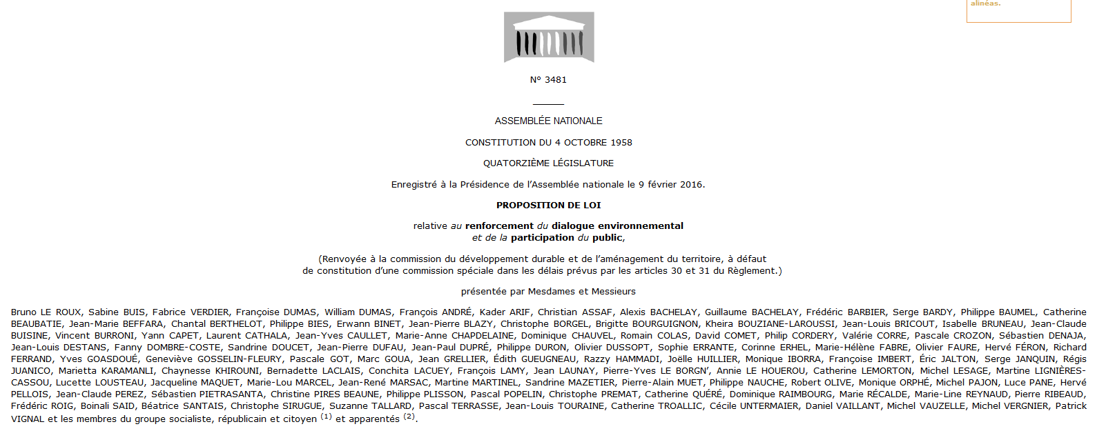 Il y a quelques jours, je vous annonçais le dépôt prochain de ma proposition de loi relative au renforcement du dialogue environnemental et de la participation du public.