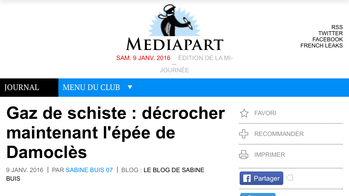 Gaz de schiste : décrocher maintenant l’épée de Damoclès