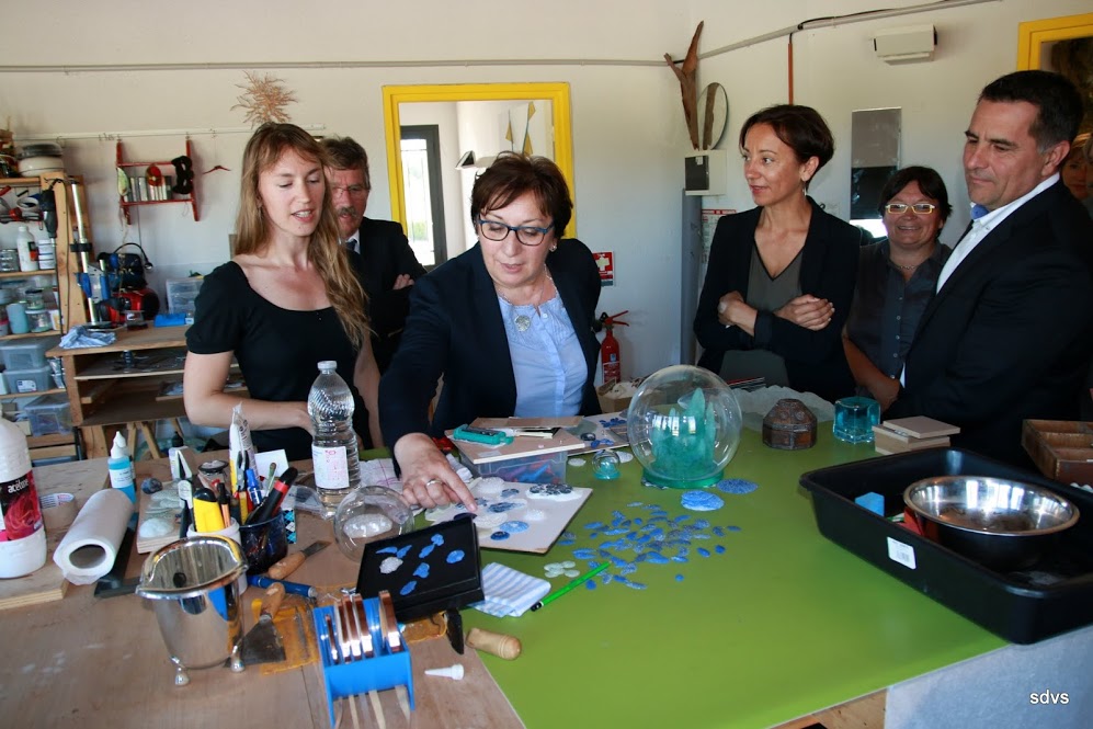 Une journée qui a débuté à Chandolas où j’ai souhaité mettre à l’honneur la filière des métiers d’art avec, dans un premier temps, une visite de la pépinière métiers d’art « Pépit’art », en présence des actuels résidents : Florie Keller, atelier de sérigraphie (www.facebook > LaVitrineFlow, www.lavitrineflow.com), Celia Pascaud, créatrice verrier (www.facebook > CeliaPascaud, http://celiapascaud.com/) , Antoine Brodin, Artiste verrier (www.facebook > AntoineBrodin, www.antoinebrodin.com).