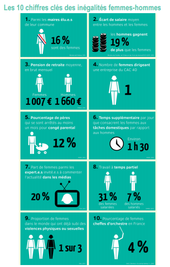 Les mouvements féministes, les lois, les politiques publiques ont permis des progrès considérables. Néanmoins, les inégalités persistent. Certaines se chiffrent, avec des écarts dont l’ampleur surprend bien souvent ceux qui en prennent connaissance : salaires inférieurs, violences, faible représentation dans les médias ou en politique. D’autres se cachent insidieusement des yeux du grand public, se devinent et se supposent : le sexisme est le plus lourd des plafonds de verre à briser !