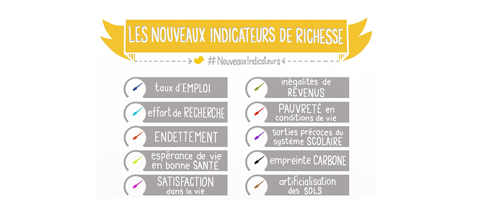 La loi prévoit désormais que le Gouvernement publie chaque année un rapport sur dix nouveaux indicateurs de richesse : taux d’emploi, effort de recherche, endettement, espérance de vie en bonne santé, satisfaction dans la vie, inégalités de revenus, pauvreté en conditions de vie, sorties précoces du système scolaire, empreinte carbone, et artificialisation des sols.